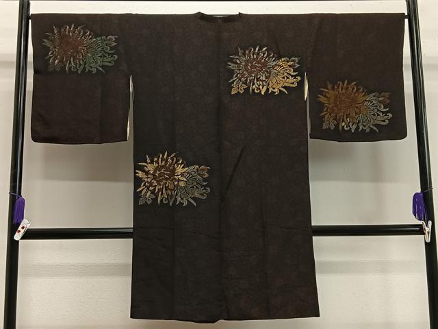 平和屋着物■ 道行コート 菊尽くし 金銀糸 ロング丈 正絹 逸品 CABA3342ua