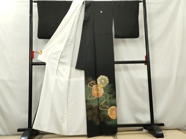 平和屋着物■ちぎり絵女流作家 谷口妙絵 黒留袖 鏡浦鳳凰花文 古典愛蔵 金彩 正絹 逸品 AABC1311cs