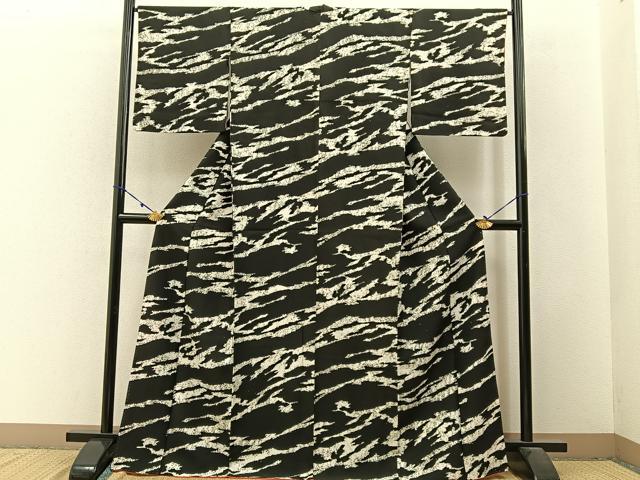 平和屋着物■上質な小紋 ろうけつ染め 霞文 黒地 正絹 逸品 BAAW9534hj