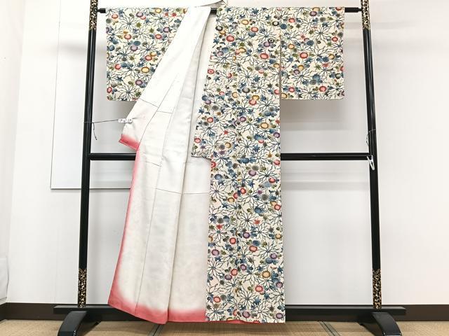 平和屋着物■上質な小紋 型染め 吉祥花文 正絹 逸品 CAAZ0590xi