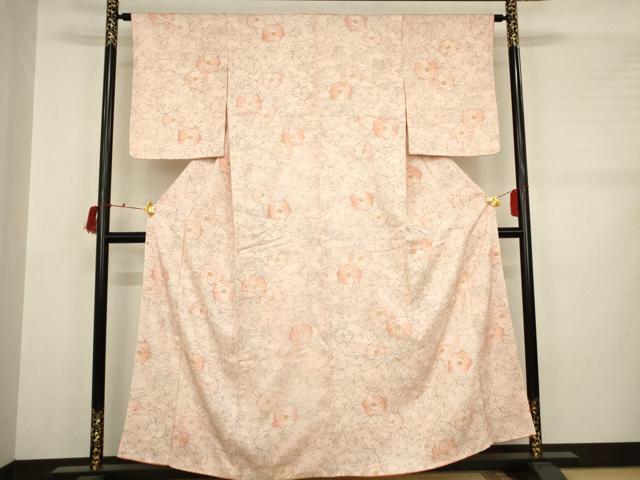 平和屋着物■上質な小紋 手描き 総絞り 草花文 正絹 逸品 AABC0924ma