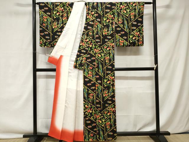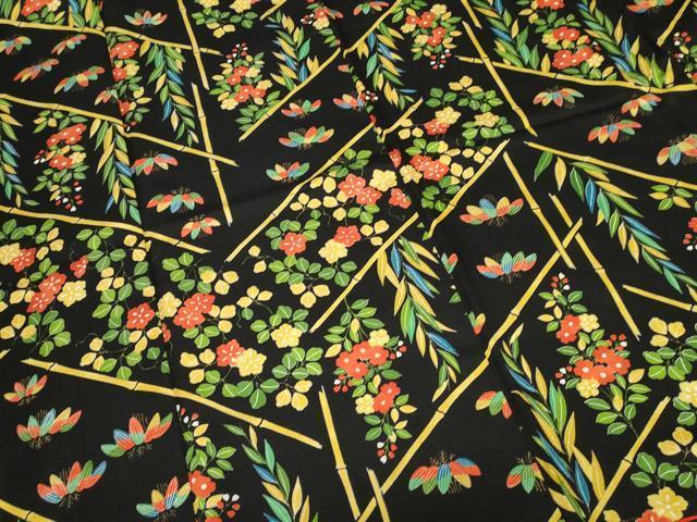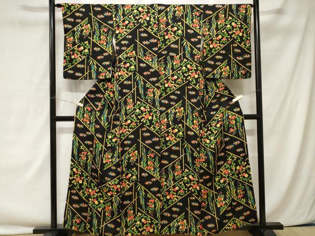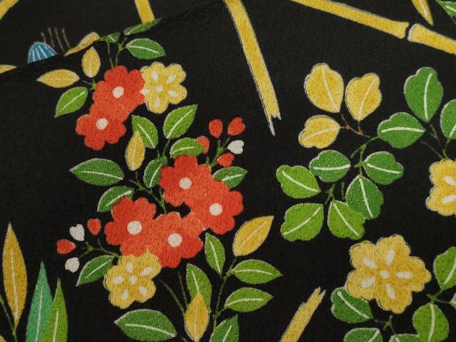 平和屋着物■上質な小紋 笹竹草花文 黒地 正絹 逸品 CAAY1607ev