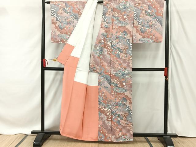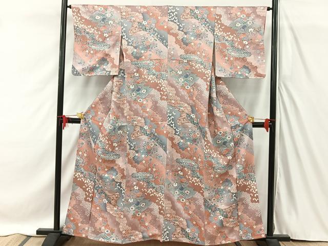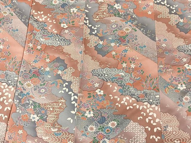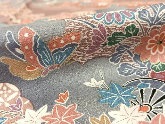 平和屋着物■上質な小紋 霞取り花蝶文 金銀彩 正絹 逸品 AABC8563uw