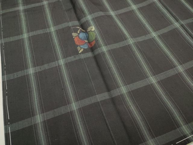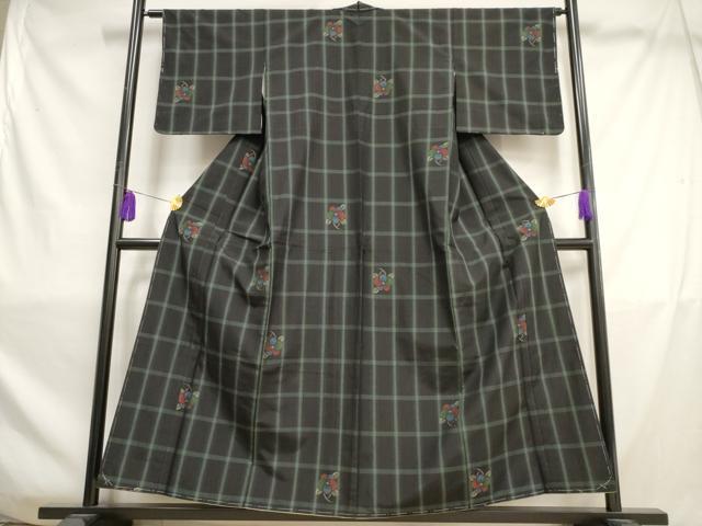 平和屋着物■上質な紬 格子花文 正絹 逸品 未使用 AABB8094br