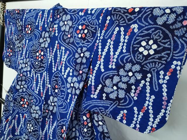 平和屋着物■極上 夏物 浴衣 有松鳴海絞り 流水団扇花文 綿 逸品 CZAA4315s5