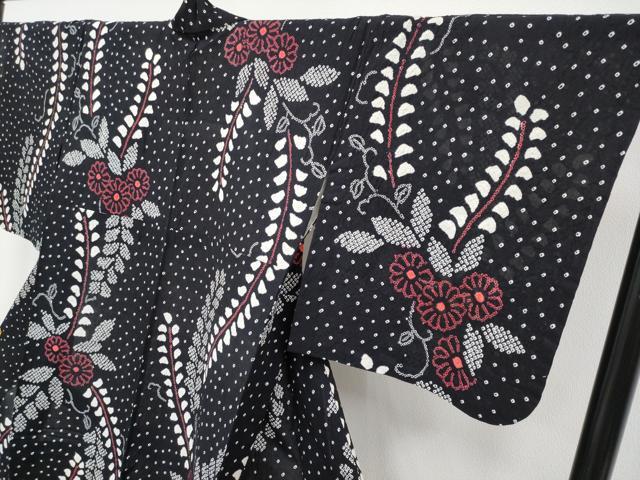 平和屋着物■極上 夏物 浴衣 有松鳴海絞り 菊唐草文 黒地 綿 逸品 CYAA3884s5