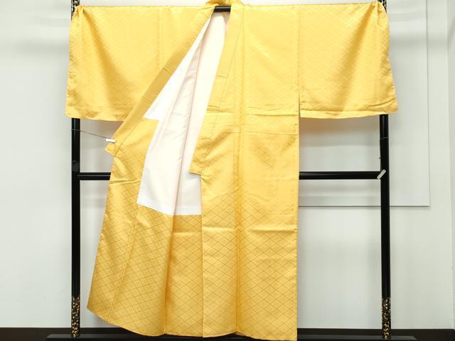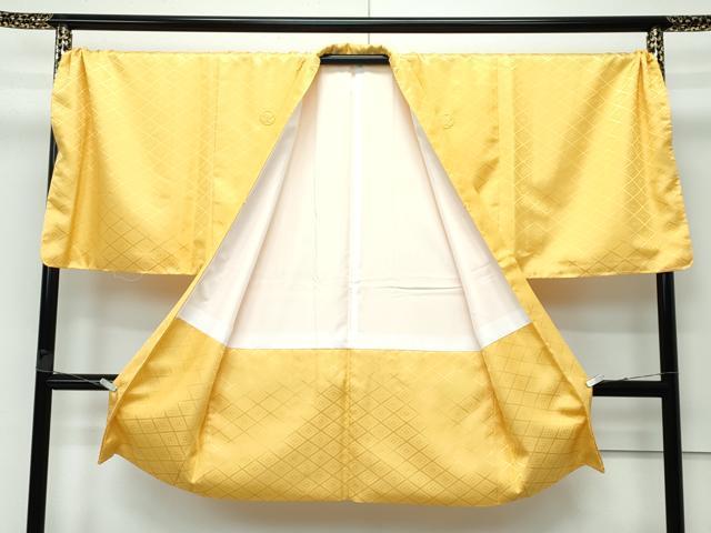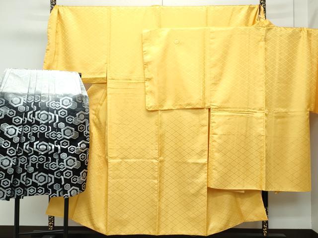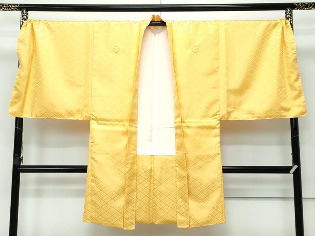 平和屋着物■極上 男性 色無地 紋付き羽織・行灯袴セット キングサイズ 黄朽葉色地 花菱地紋 舞台衣装 洗える着物 逸品 未使用 CZAA3661s5
