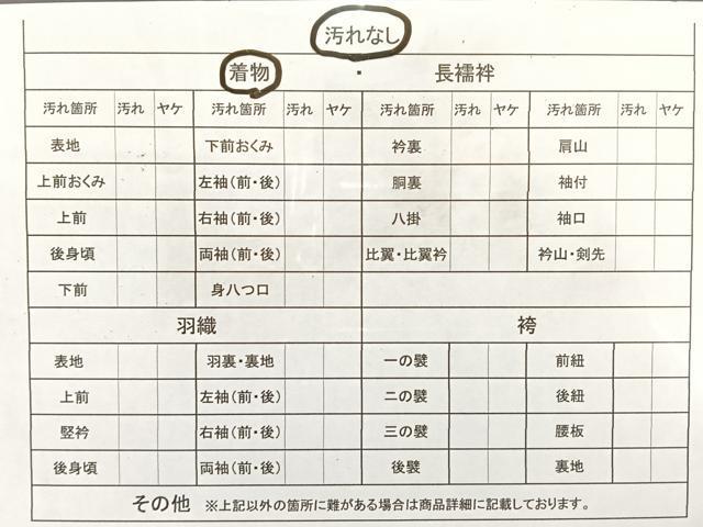 着物の状態をより分かりやすくお伝えするために、汚れチェックシートの英訳版を作成致しました。