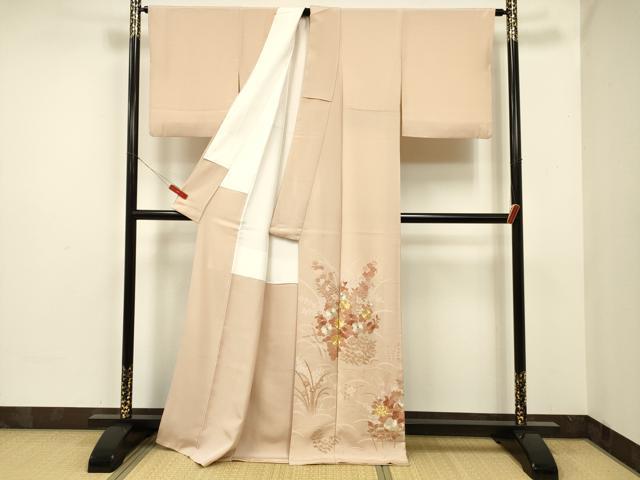 平和屋着物■色留訪問着 駒刺繍 草花文 金彩 正絹 逸品 DAAJ8138cm