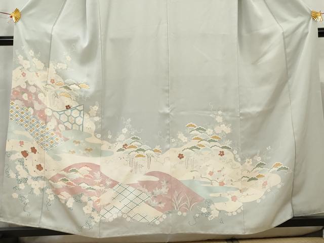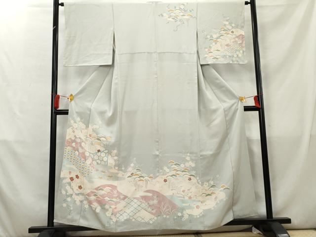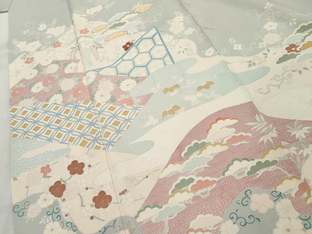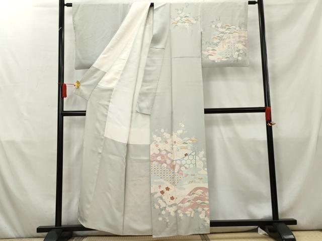 平和屋着物■訪問着 刺繍 吉祥梅松文 銀彩 正絹 逸品 AABC1335cs