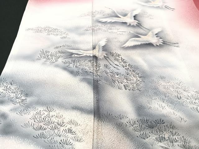 平和屋着物■訪問着 刺繍 手描き 飛鶴松文 暈し染め 正絹 逸品 未使用 CABB2837xe