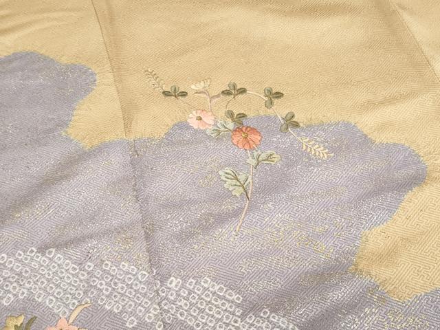 平和屋着物■訪問着 絞り 刺繍 草花文 金銀彩 正絹 逸品 CAAY7591th