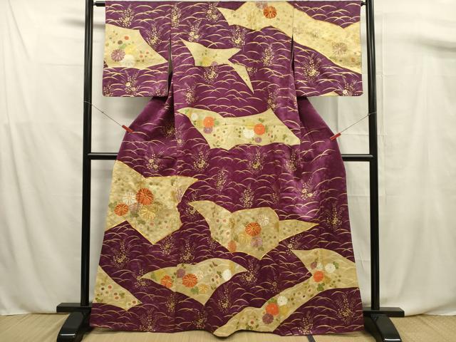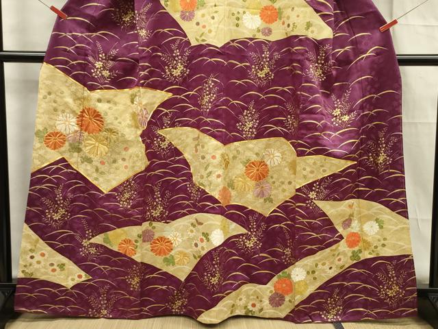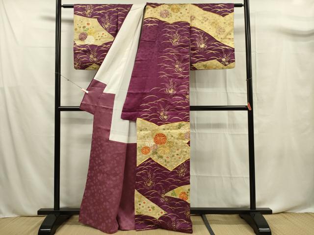 平和屋着物■訪問着 駒刺繍 切嵌草花文 金彩 正絹 逸品 DABF0685ya