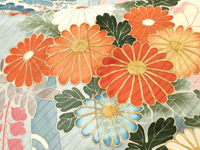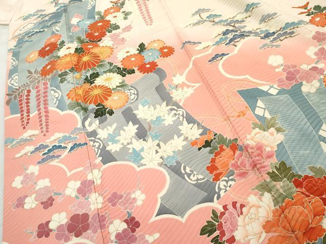 平和屋着物■豪華振袖 駒刺繍 吉祥草花文 暈し染め 金彩 正絹 逸品 AABB8597cs