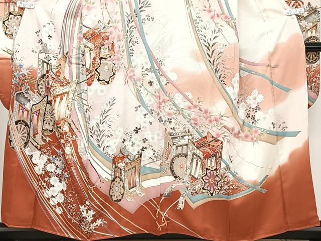 平和屋着物■豪華振袖 駒刺繍 御所車花文 暈し染め 金彩 正絹 逸品 CAAY3607xi
