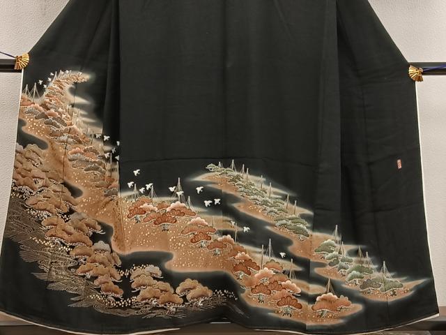 平和屋着物■豪華黒留袖 作家物 花鳥文 暈し染め 金彩 正絹 逸品 BAAX4472mz