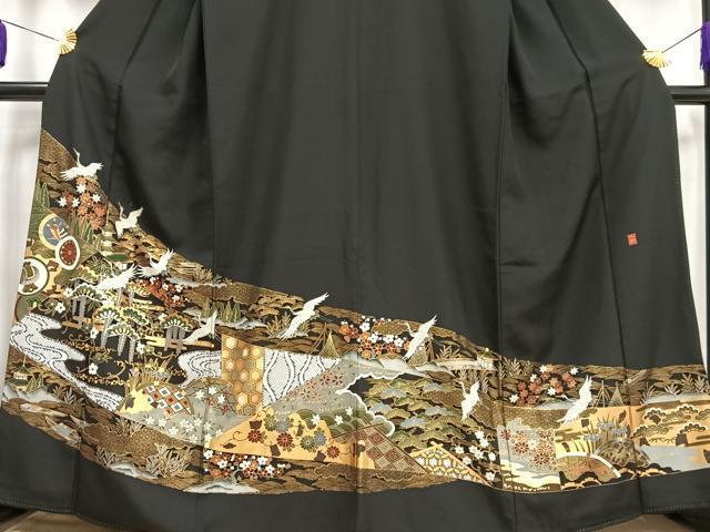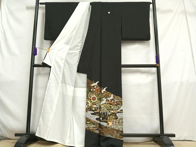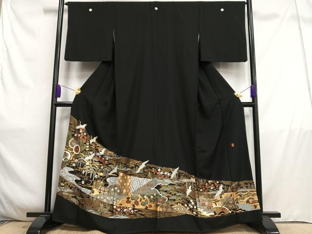 平和屋着物■豪華黒留袖 作家物 駒刺繍 飛鶴草花文 金彩 正絹 逸品 AABC0870oa