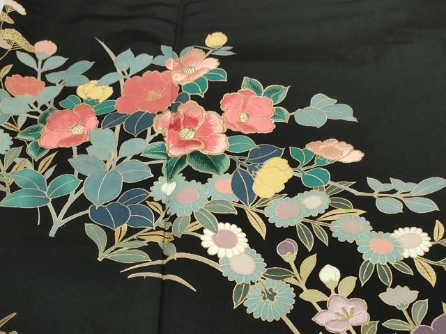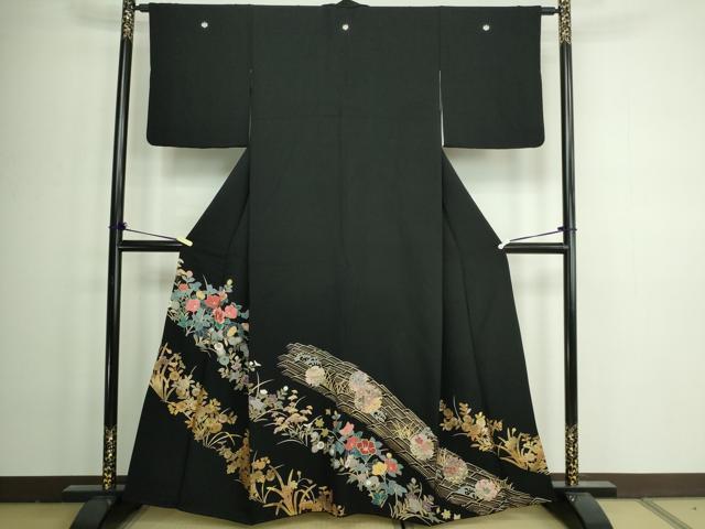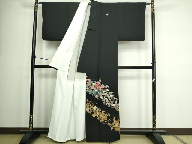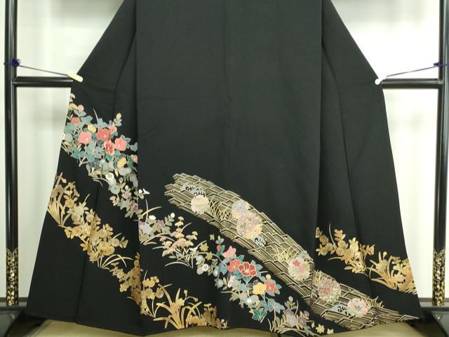 平和屋着物■豪華黒留袖 刺繍 雪輪草花文 金彩 正絹 逸品 DAAZ9728sf