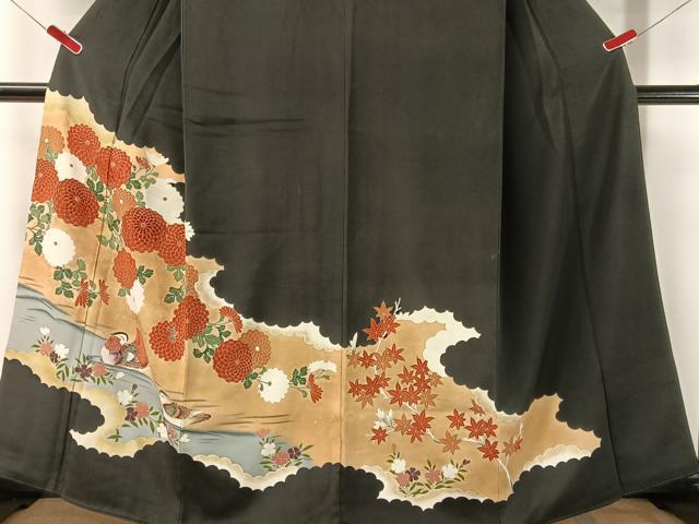 平和屋着物■豪華黒留袖 刺繍 鴛鴦菊花文 金彩 正絹 逸品 CAAY7197vp