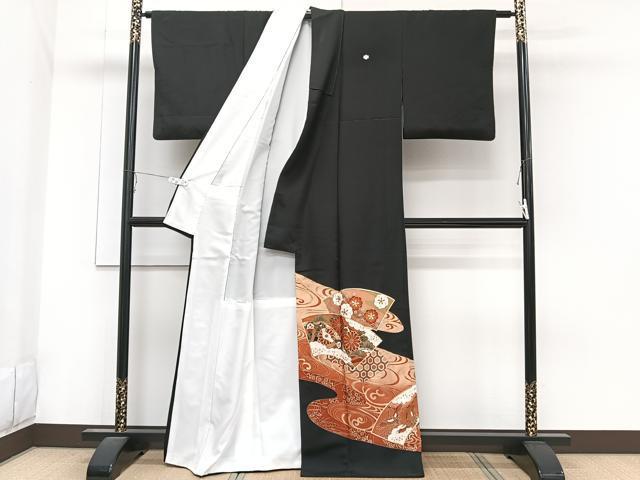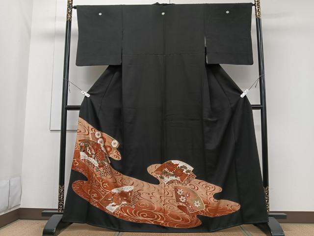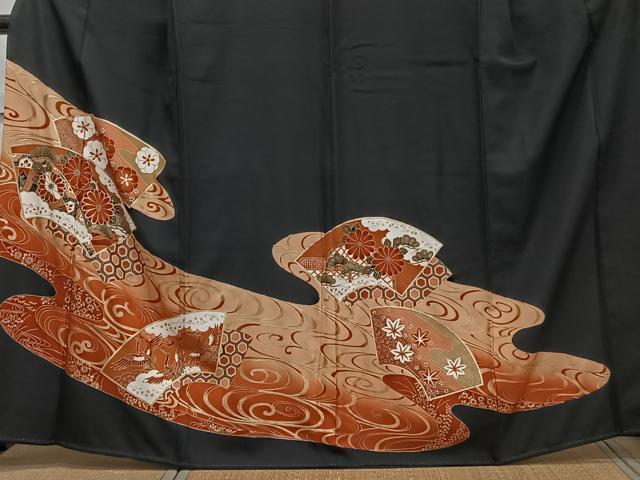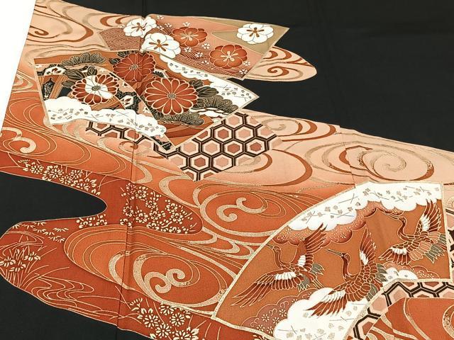 平和屋着物■豪華黒留袖 地紙飛鶴吉祥花文 暈し染め 金彩 正絹 逸品 CABA5474xi