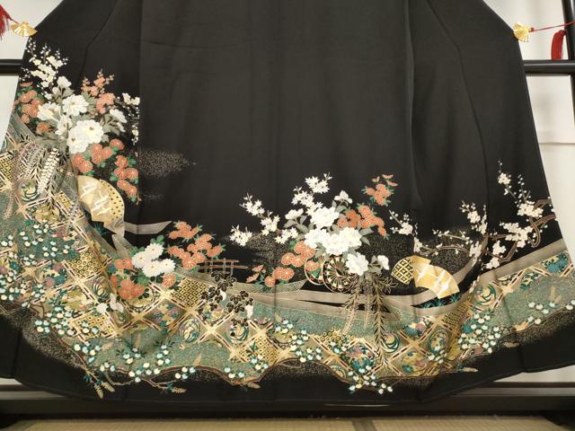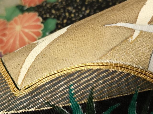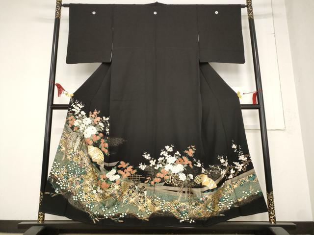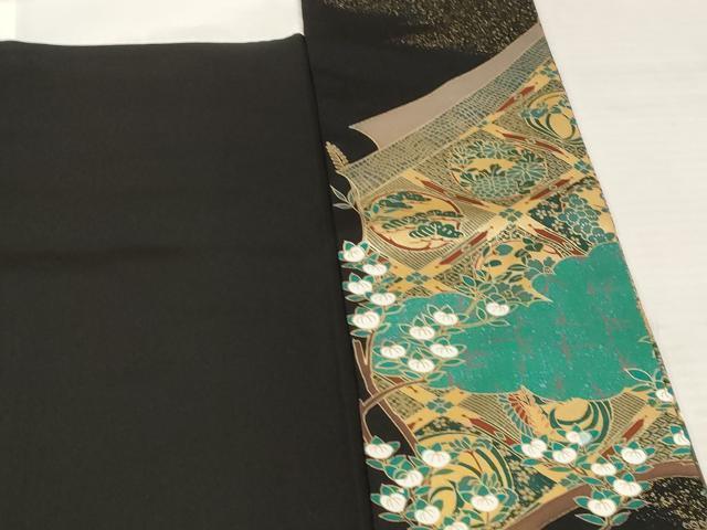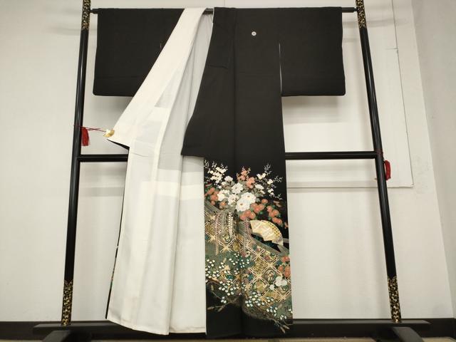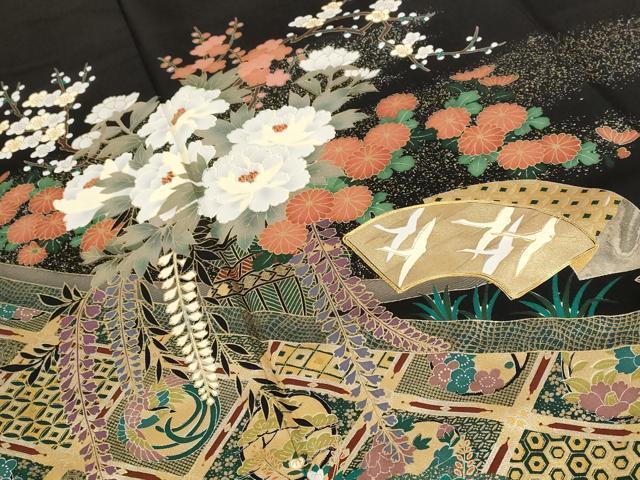 平和屋着物■豪華黒留袖 駒刺繍 地紙飛鶴花文 金彩 正絹 逸品 AABC8236st