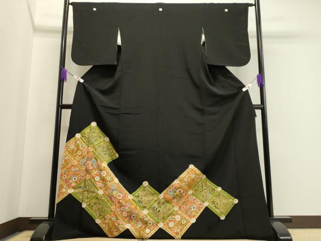 平和屋着物■豪華黒留袖 駒刺繍 菱花唐草文 金彩 ロング丈 正絹 逸品 CABA0216oy