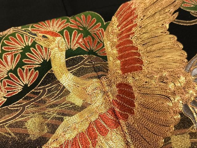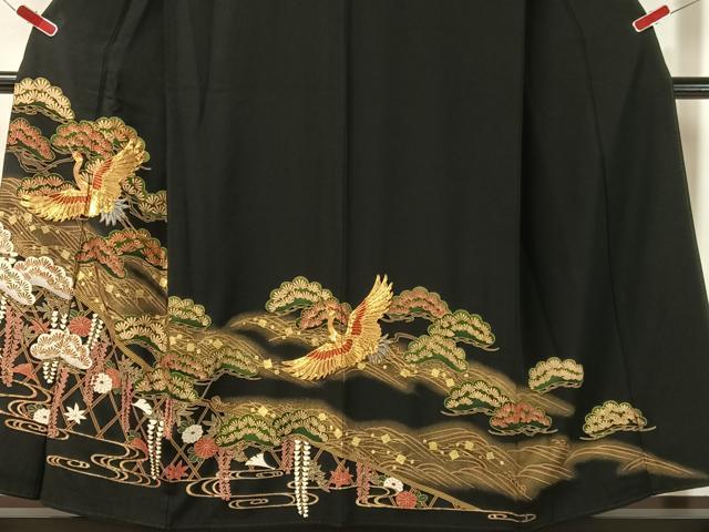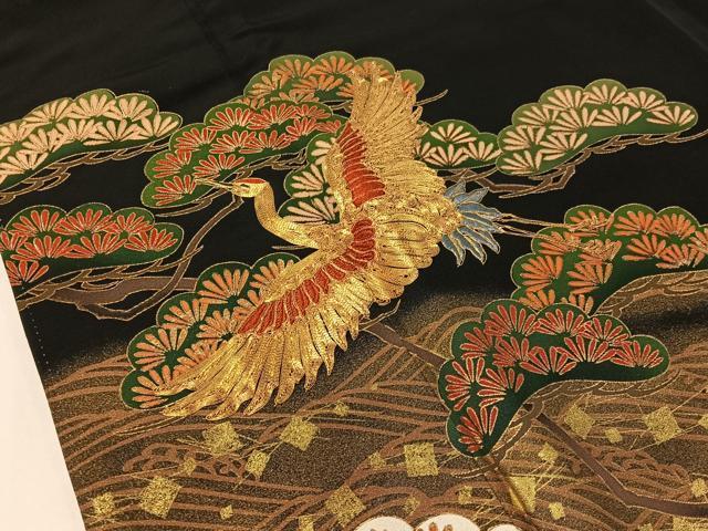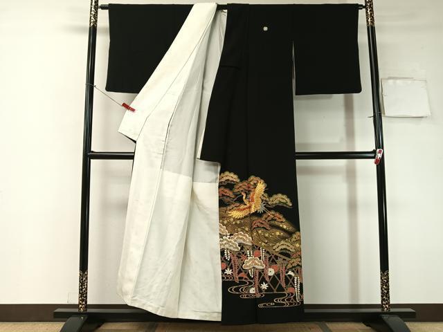 平和屋着物■豪華黒留袖 駒刺繍 飛鶴浜松文 金彩 正絹 逸品 CAAZ2096vp