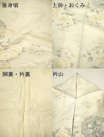 状態は接写画像のように後身頃・上前・おくみ・胴裏・衿裏・衿山に薄い汚れがございますが