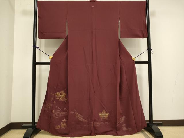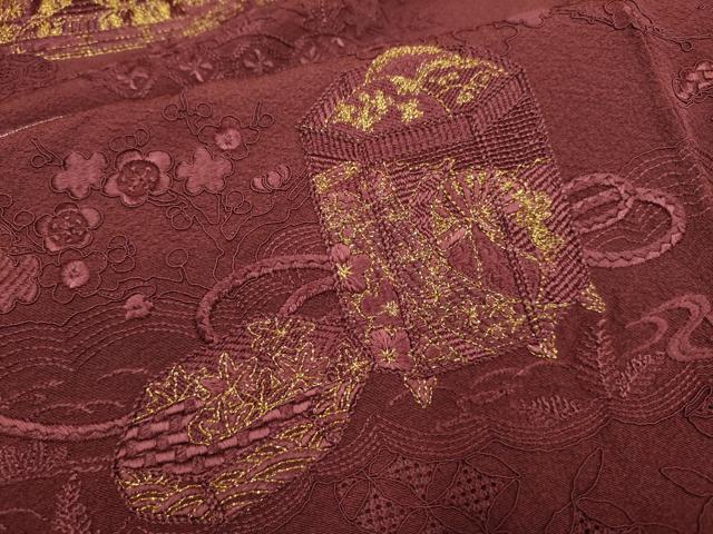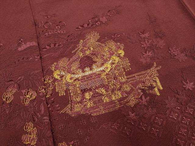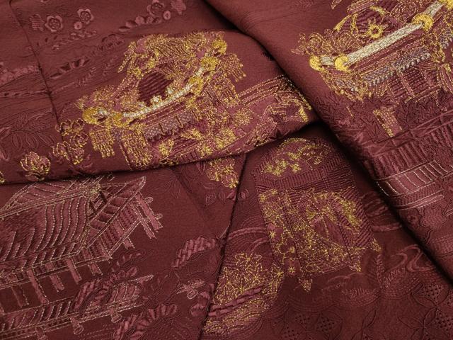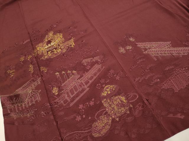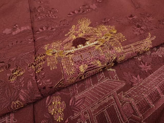 平和屋着物▼中国三大刺繍 スワトウ刺繍 汕頭刺繍 総刺繍 色留袖 風景文 金糸 正絹 逸品 DAAX2779du