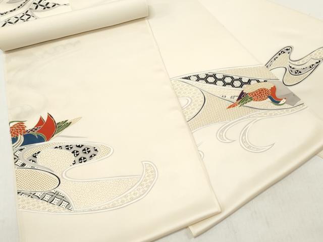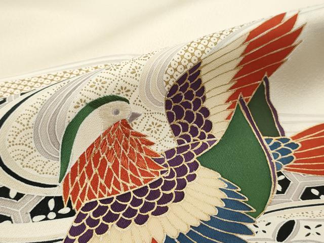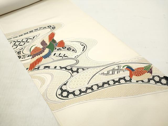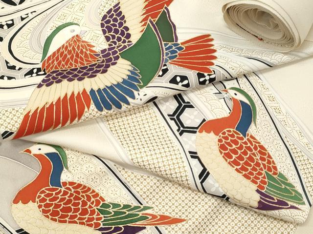 平和屋着物▼付下げ 反物 着尺 刺繍 鴛鴦吉祥文 金彩 逸品 未使用 DABE3053we