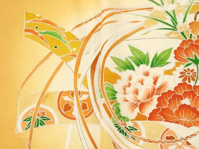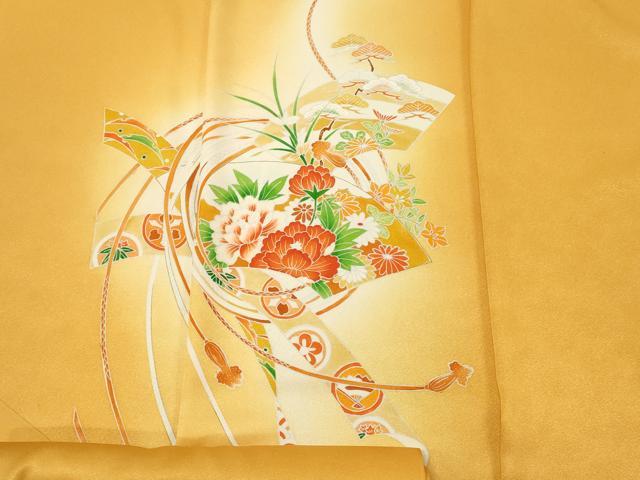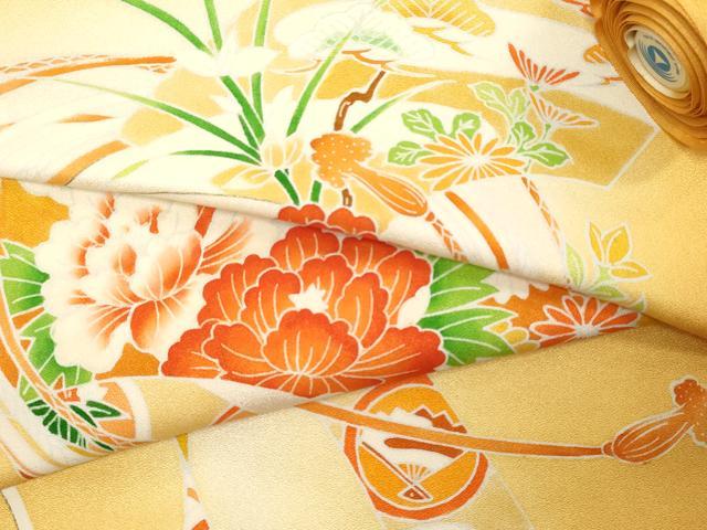 平和屋着物▼付下げ 反物 着尺 地紙花松文 暈し染め 金彩 逸品 未使用 DABE3075we