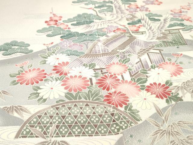 平和屋着物▼付下げ 反物 着尺 飛鶴風景文 暈し染め 逸品 未使用 DAAX6812zy