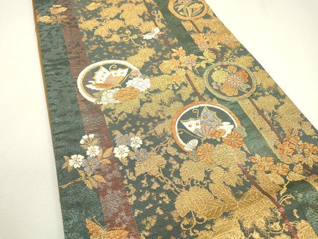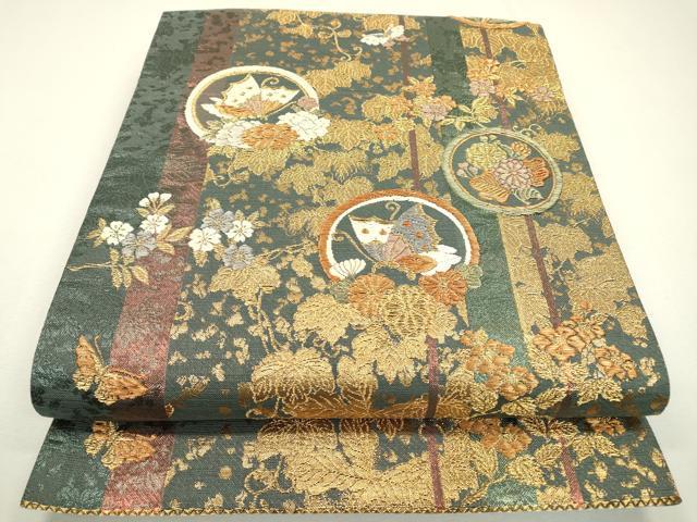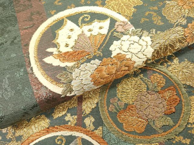 平和屋着物▼六通柄袋帯 唐織 舞蝶花丸文 金糸 正絹 逸品 DAAZ6448fe