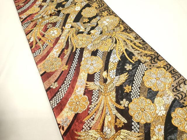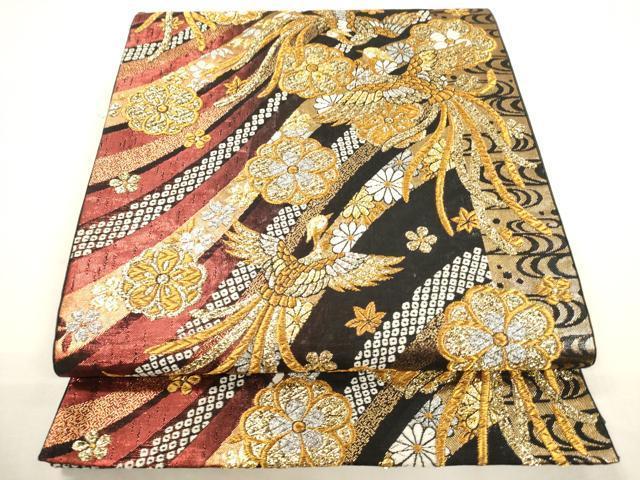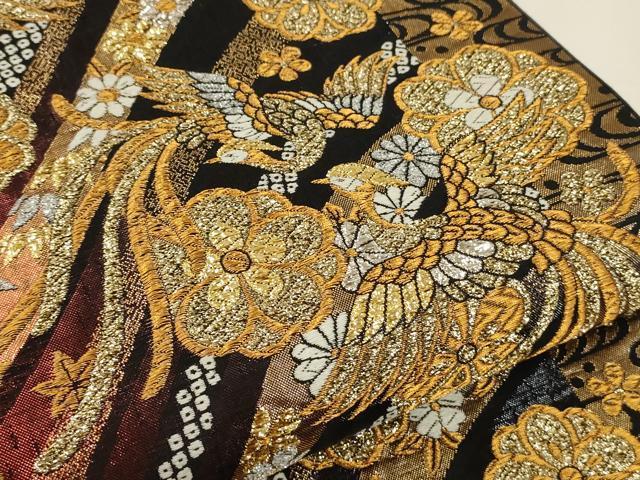 平和屋着物▼六通柄袋帯 唐織 道長鳳凰花文 金銀糸 正絹 逸品 未使用 CAAY4361ak