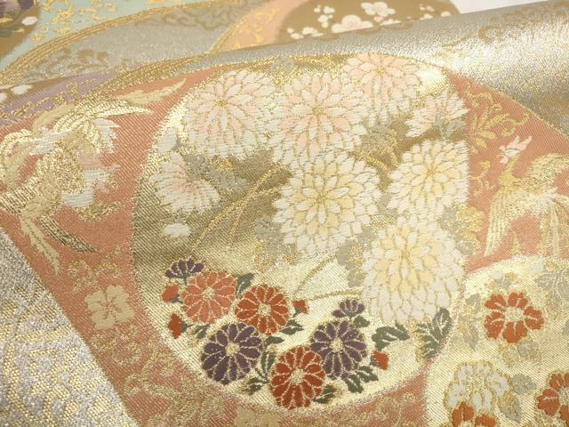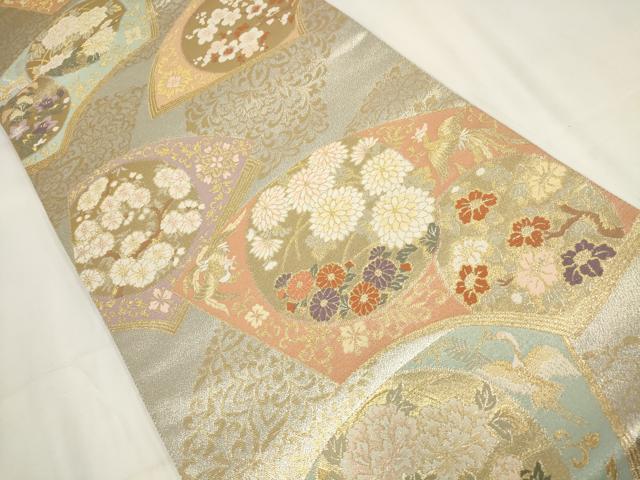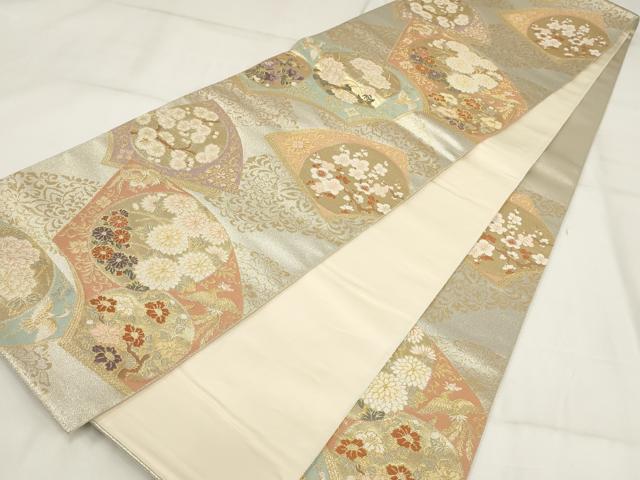 平和屋着物▼六通柄袋帯 扇面取四季花文 金銀糸 正絹 逸品 AABH7712wj