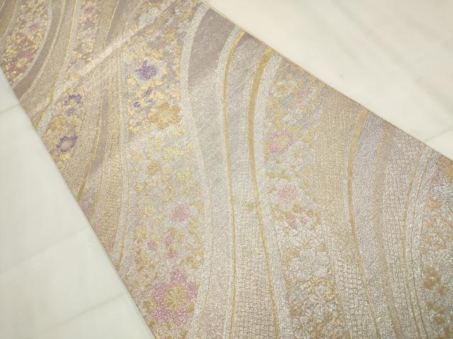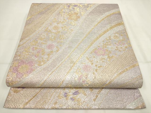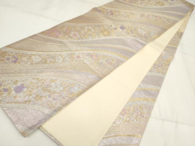 平和屋着物▼六通柄袋帯 流水花文 金銀糸 正絹 逸品 AABH7759wj