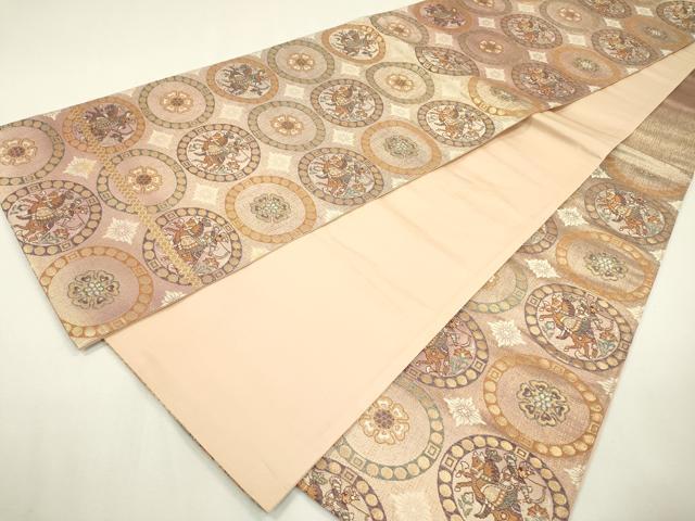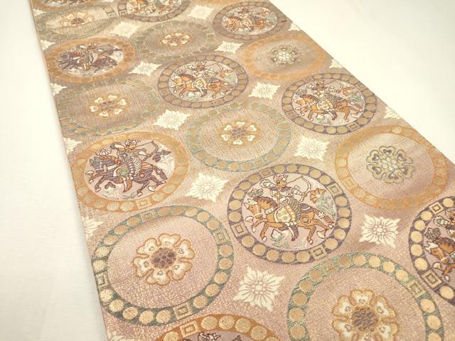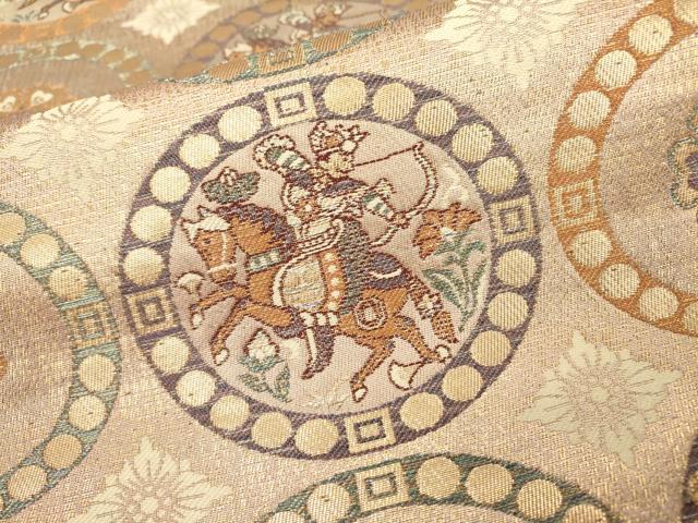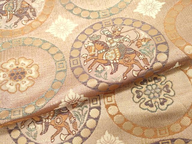 平和屋着物▼六通柄袋帯 狩猟花絵皿文 金糸 正絹 逸品 DAAZ6446fe