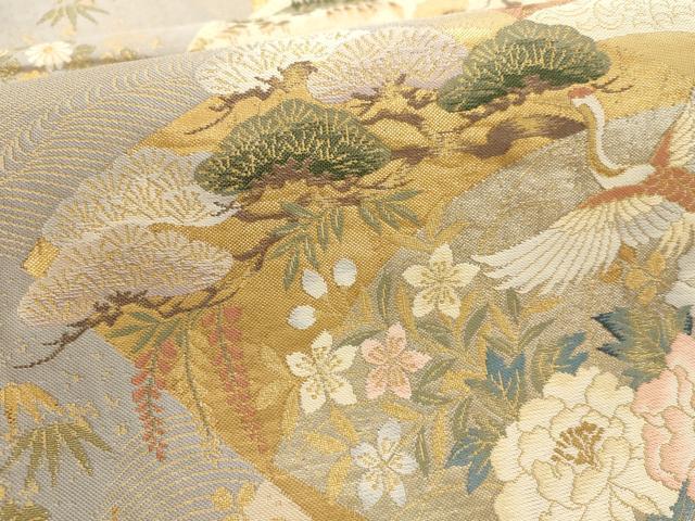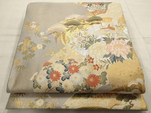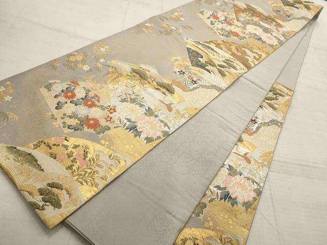 平和屋着物▼六通柄袋帯 琳派扇面草花図 しょうはく 金銀糸 正絹 逸品 AABD2808wj