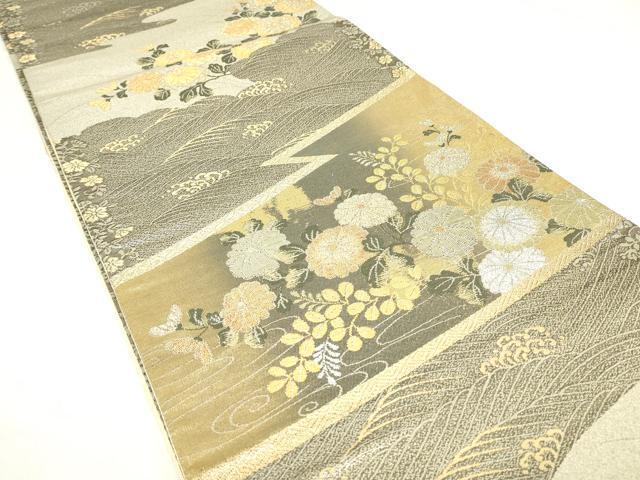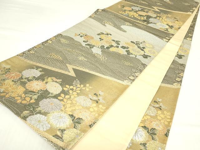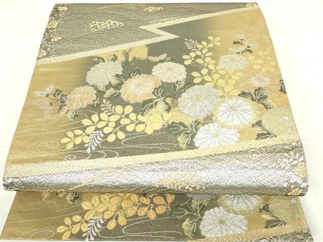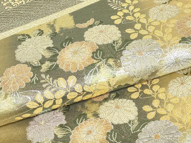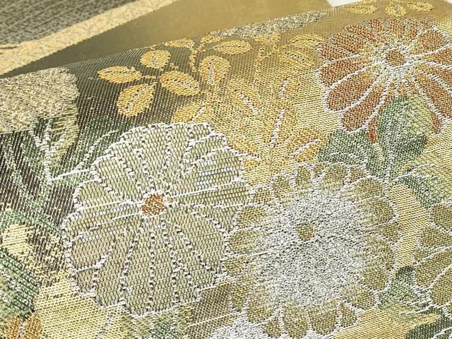 平和屋着物▼六通柄袋帯 瑞華螺鈿箔 全通箔 流水菊文 金銀糸 正絹 逸品 DAAY9849az