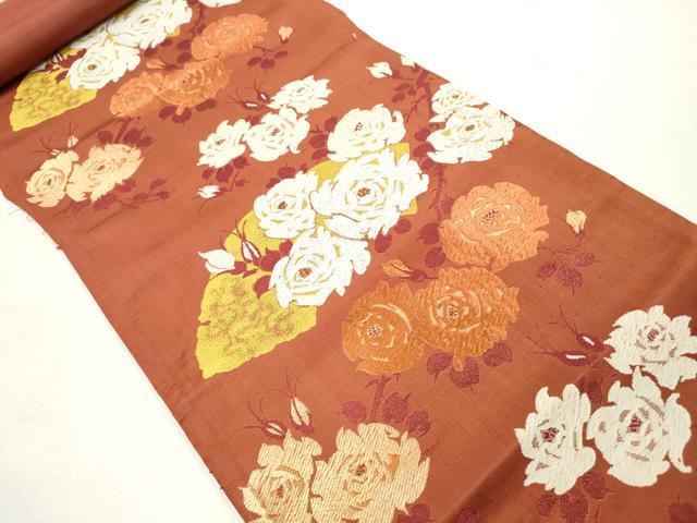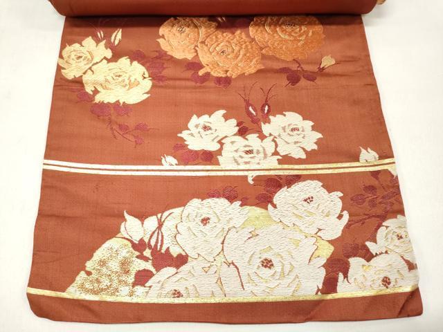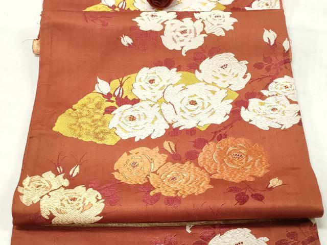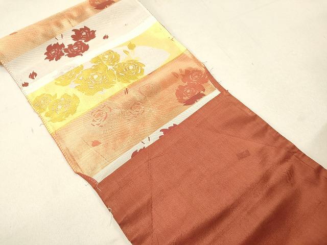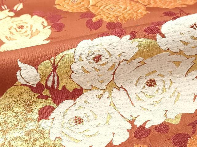 平和屋着物▼名古屋帯 帯反物 唐織 地紙花文 薔薇 バラ 金糸 逸品 DAAY0971we