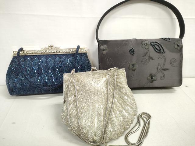 平和屋着物▼和装小物 ビーズバッグまとめて3点 ショルダー ハンドバッグ がま口 レトロ 花唐草 立涌 逸品 DAAW8401zzz