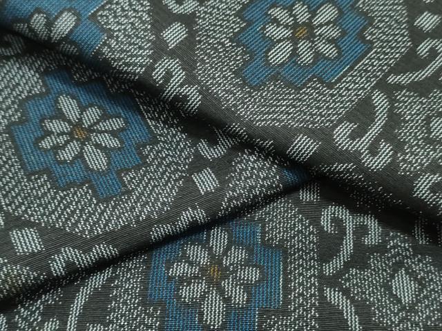 平和屋着物▼民芸紬 反物 着尺 草花文 証紙付き 逸品 未使用 DAAX6960zy
