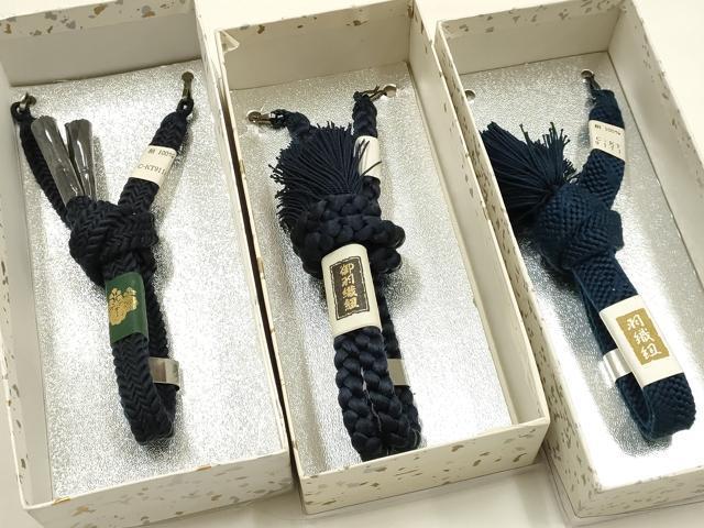 平和屋着物▼男性 和装小物 羽織紐まとめて3点 紺 青 切り房・撚り房 逸品 未使用 AABF9323ay