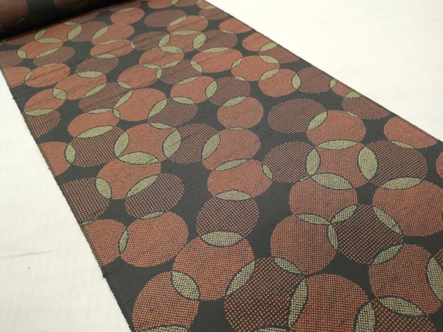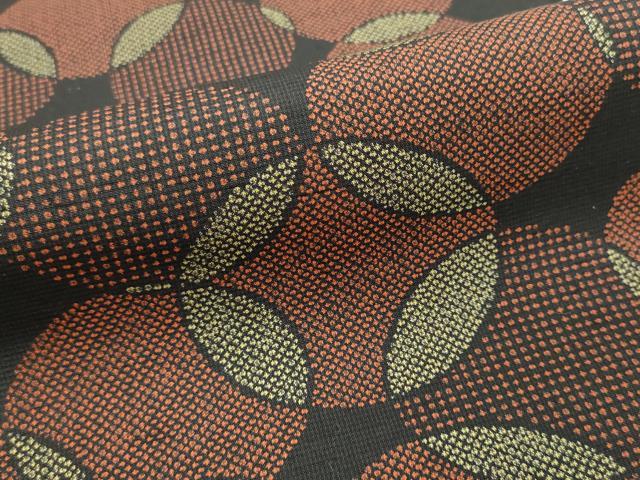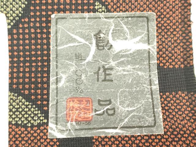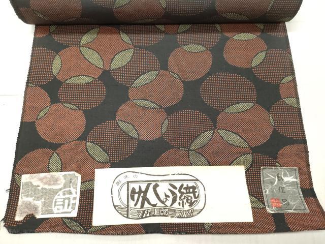 平和屋着物▼紬 反物 着尺 けんしょう織 七宝文 黒地 証紙付き 逸品 未使用 DABE3185we