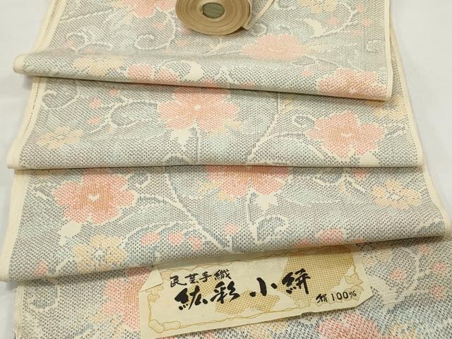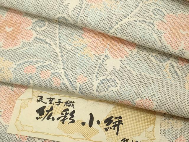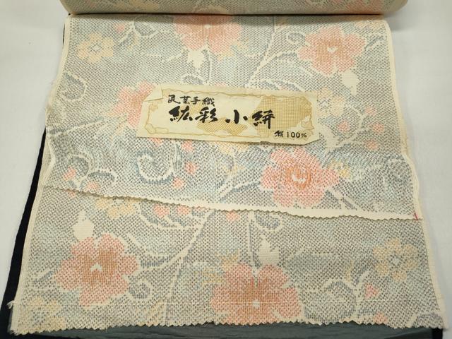 平和屋着物▼紬 反物 着尺 民芸手織 紘彩小絣 花唐草文 証紙付き 逸品 未使用 DAAY0521we