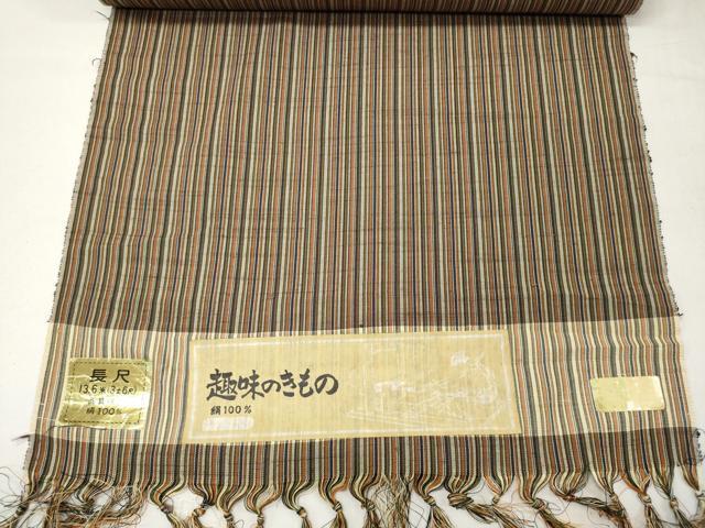 平和屋着物▼紬 反物 着尺 縞 逸品 未使用 DAAY0586we