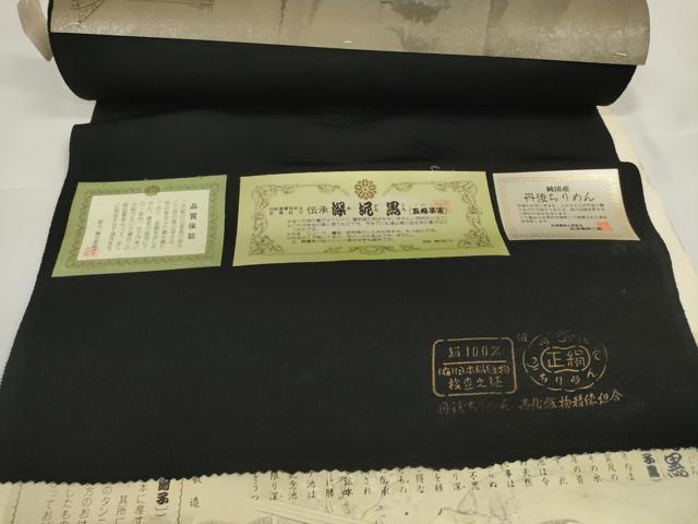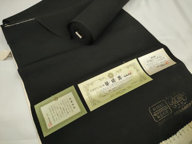 平和屋着物▼羽織・コート 黒生地 反物 羽尺 雪芝地紋 深泥黒 丹後ちりめん 逸品 未使用 DAAW7436zzz