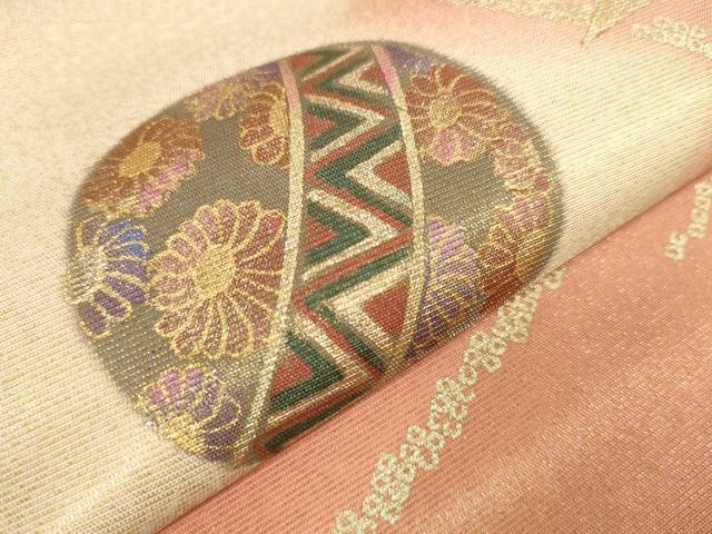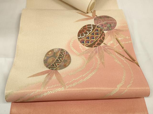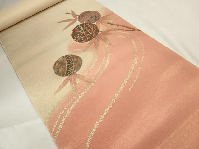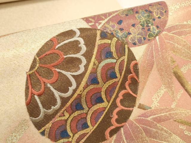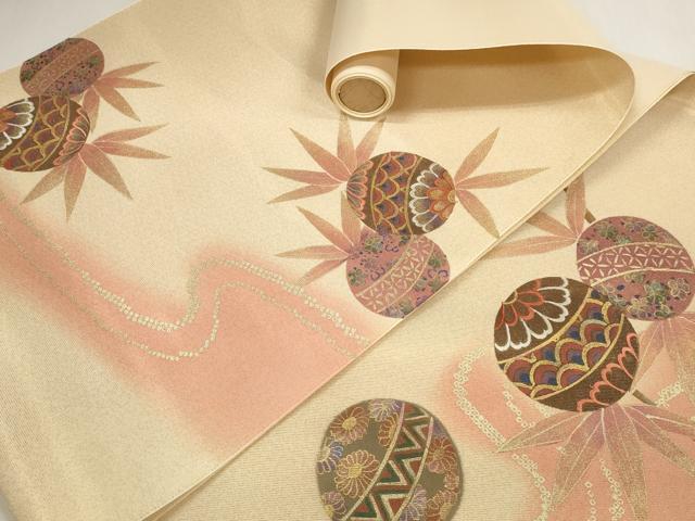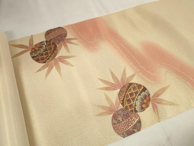 平和屋着物▼西陣 一秀織物謹製 名古屋帯 帯反物 刺繍 笹竹手毬花文 金彩 証紙付き 逸品 未使用 DAAW7981zzz