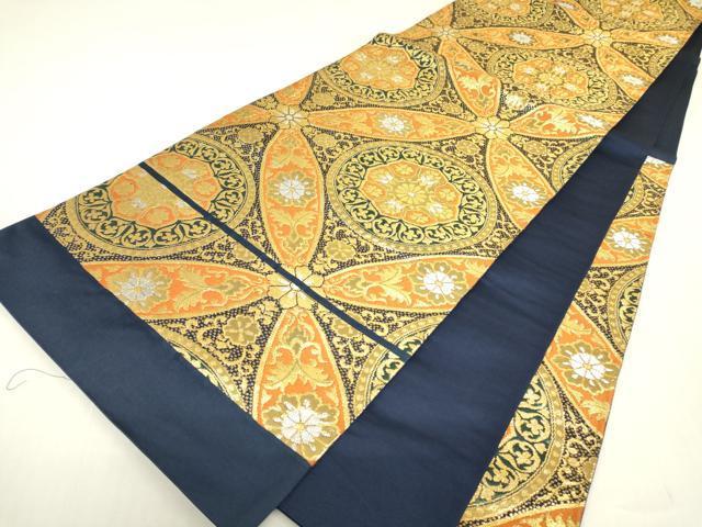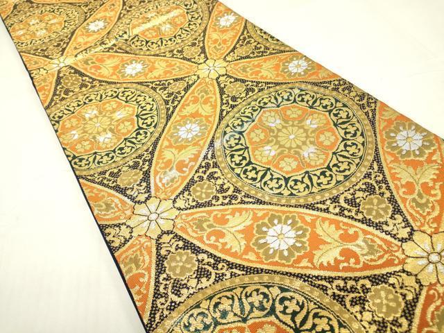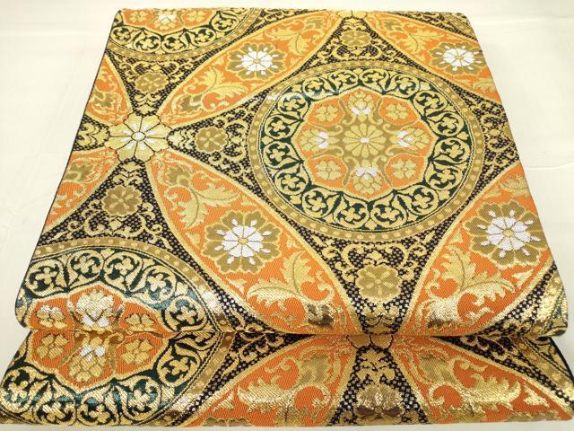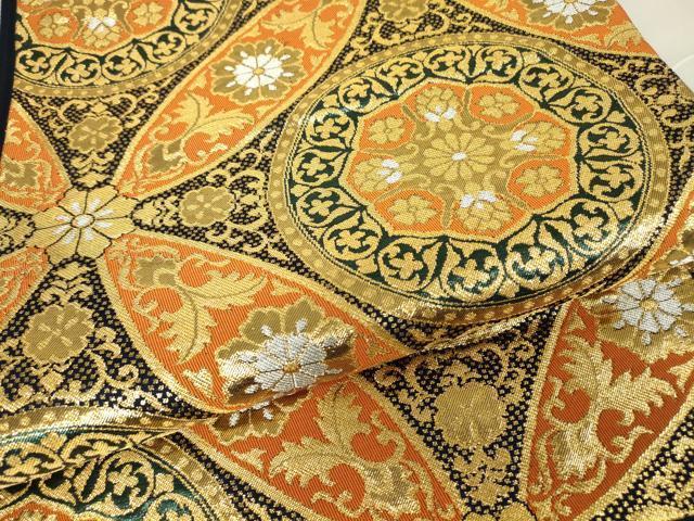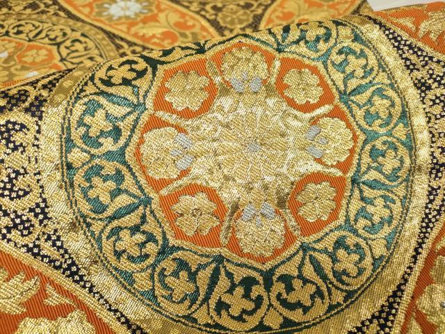 平和屋着物▼西陣 六通柄袋帯 七宝花文 金糸 証紙付き 正絹 逸品 未使用 DAAY9830az