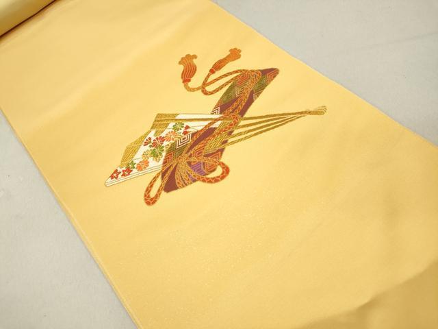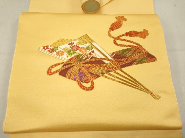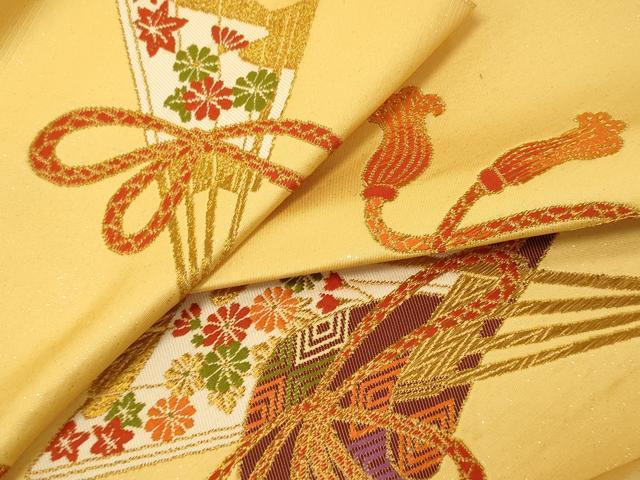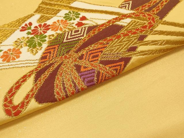 平和屋着物▼西陣 名古屋帯 帯反物 扇面花文 金糸 証紙付き 逸品 未使用 DAAV7670we